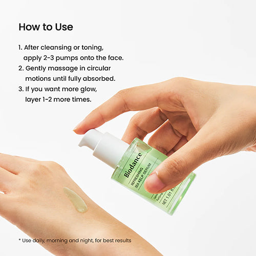 After cleansing or toning, apply 2-3 pumps onto the face.