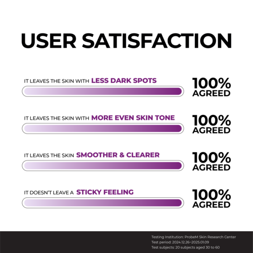 100% user satisfaction with smoother, clearer skin and a more even skin tone.