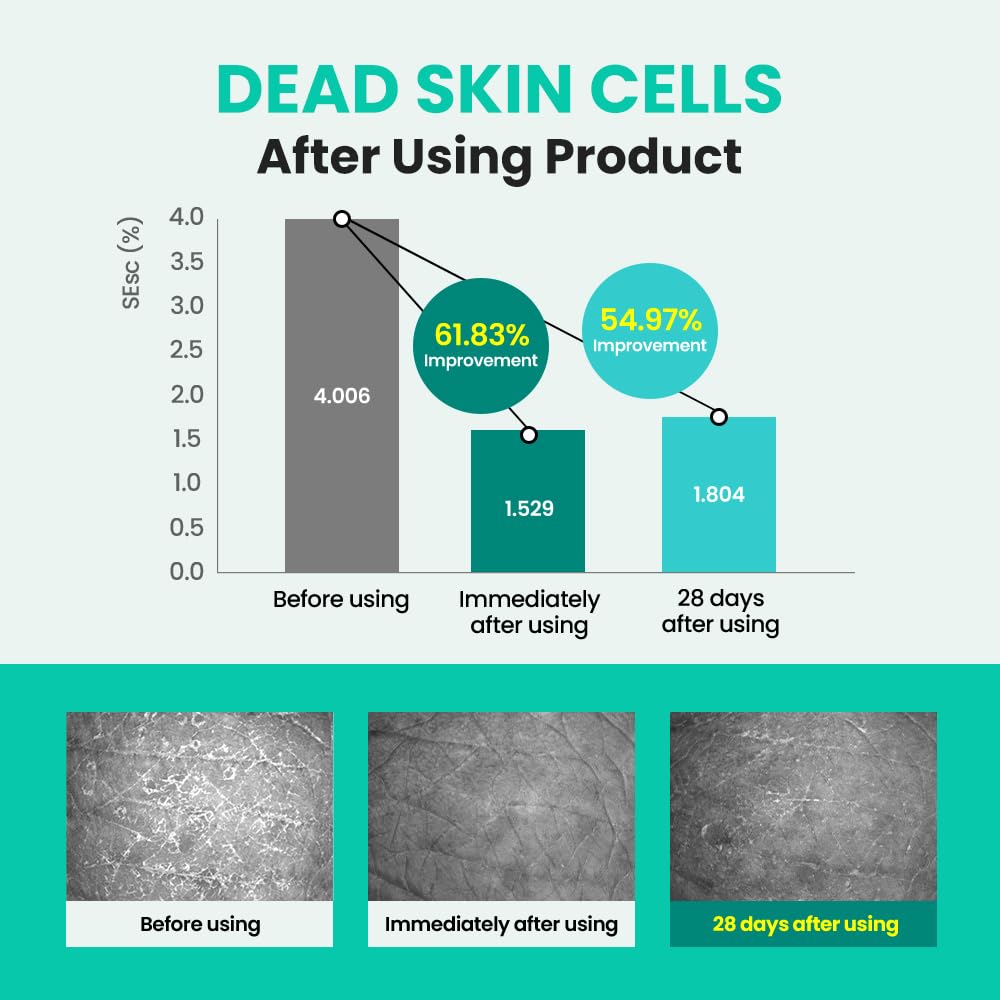 The 4Acidzyme™ complex gently dissolves dead skin cells while maintaining skin comfort.