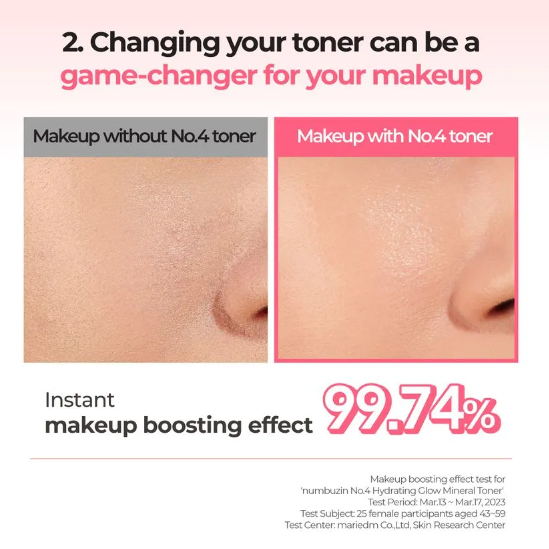 • Experience the glowing skin from deep inside by applying a toner. Improves makeup adherence by 99.74% after single use.