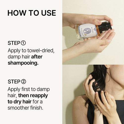 Take an appropriate amount of the oil and gently apply to your hair. Apply more to split ends and severely damaged parts of your hair for better effects.