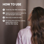 * STEP 1. After shampooing, with your hair still wet, squeeze 1 to 3 pumps into your plam and apply through your hair.