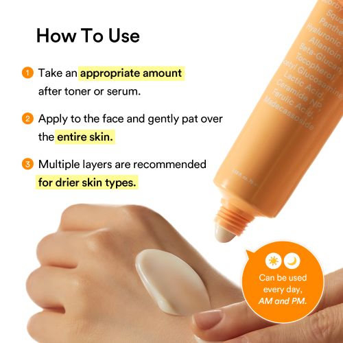 After cleansing and toning, apply a moderate amount to the skin evenly and gently pat it for better absorption.