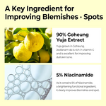 90 % of Yuja Extract, full of moisture and nutrient, and 12 types of vitamins, recharge skin with vitality and a brightening agent, 5 % of Niacinamide offers skin with brightening care. Moreover, it is Whitening / Anti-wrinkle dual-functional cosmetic to alleviate freckles and blemishes.
