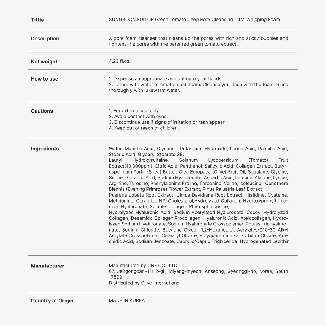 [SUNGBOON EDITOR] Green Tomato Deep Pore Cleansing Ultra Whipping Foam
