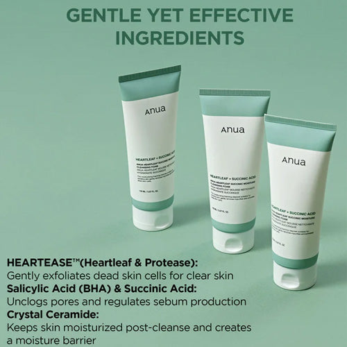 - The cleansing foam contains Succinic Acid to regulate sebum and helps with blocked pores.