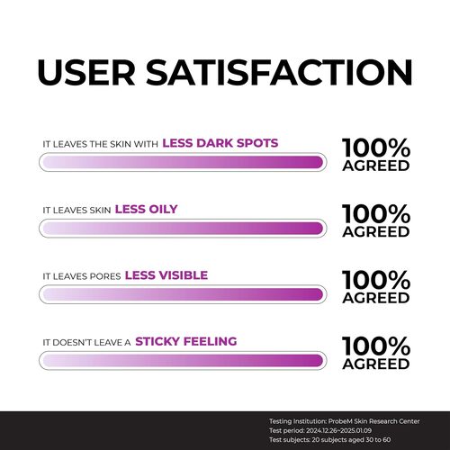 Clinically Proven Results Dermatologically tested formula shows a -27.7% reduction in hyperpigmentation and a -20% decrease in redness after 2 weeks of use, leaving skin smoother and more refined.