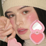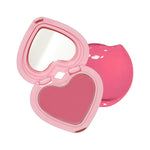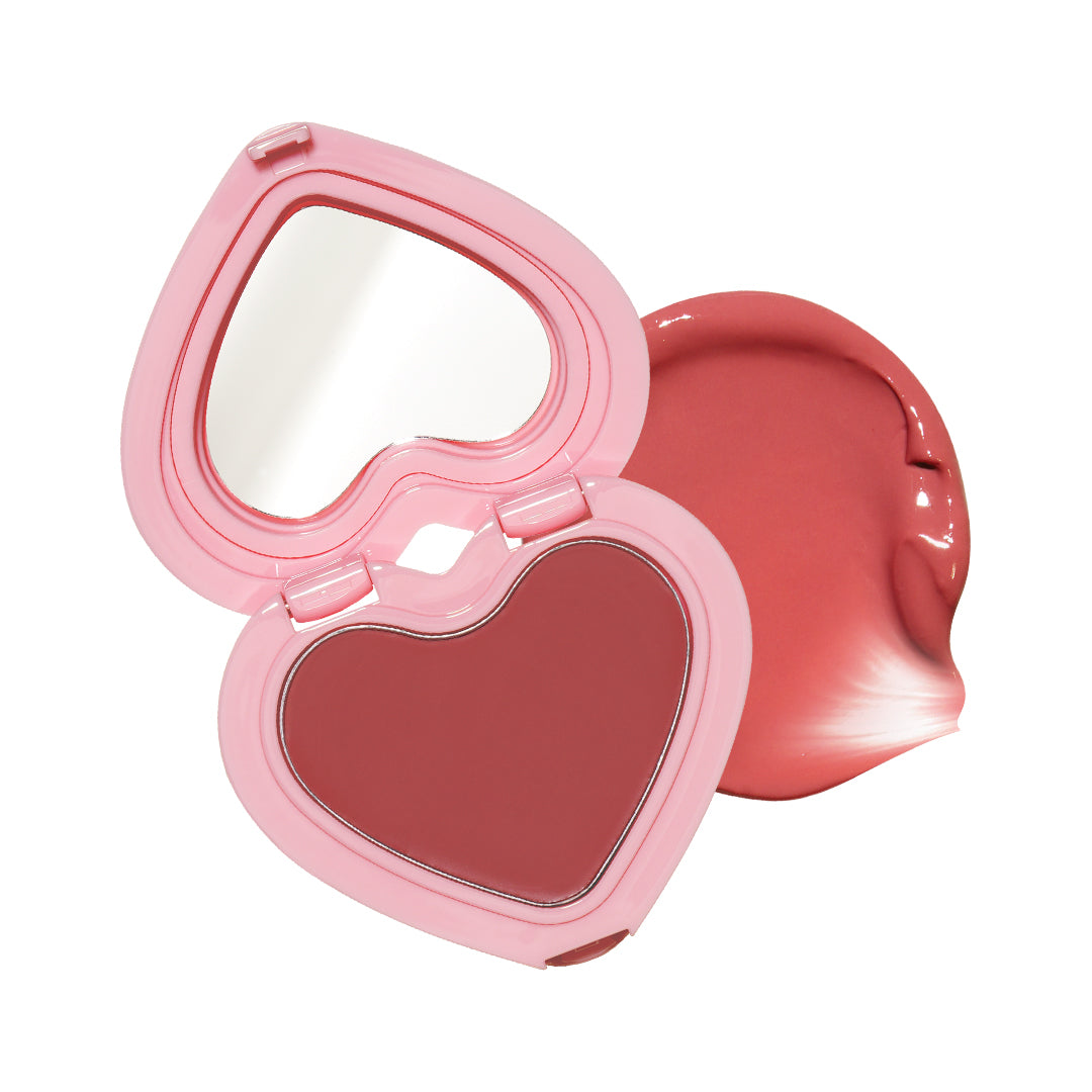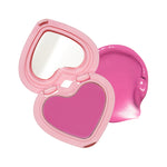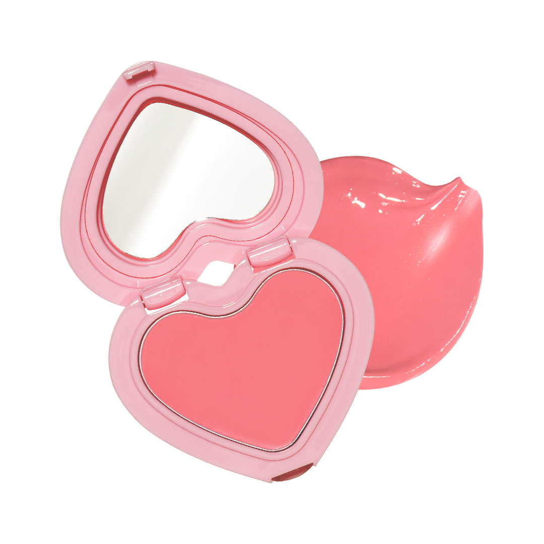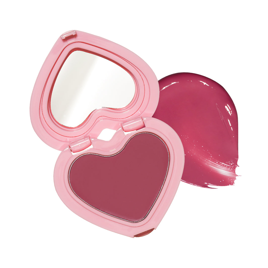 The unique heart block container with clear glow cheek balm provides buildable formula that melts on body temperature with soft blending.