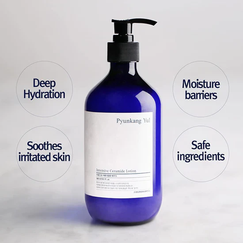 The Pyunkang Yul Intensive Ceramide Lotion provides abundant hydration, perfect for rejuvenating and relaxing the skin without any stickiness. Certified as zero-irritation, this lotion is fragrance-free and color-free, containing EWG graded green ingredients. Ceramide strengthens the moisture barrier, while five hyaluronic acids attract moisture, and shea butter and macadamia seed oil maintain skin balance. Ideal for all skin types, especially rough, dry, and sensitive skin, it offers powerful, balanced nourishment. For best results, use with Pyunkang Yul's Low pH Body Wash. The lotion's key ingredient, ceramide, builds up layer by layer to strengthen and moisturize the skin for a long time. Its refreshing hydration penetrates instantly into dry skin, providing a non-greasy, moisturizing texture. After showering, apply an appropriate amount to dry skin, gently massaging it in for better results, especially on severe dry areas. Long lasting intensive Pyunkang Yul Intensive Ceramide Lotion. Soft and fresh, fragrance-free texture deeply hydrates the inside of the skin!