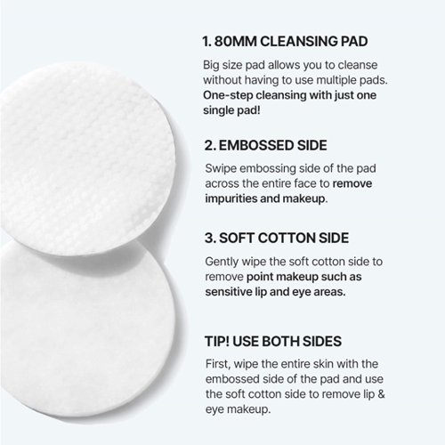 - Soft, big size cleansing pads infused with mildly acidic cleansing water help to balance skin after cleansing.