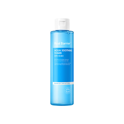 Real Barrier Aqua Soothing Toner is a hydrating toner with a low pH, that gently helps improve and promote long-term hydration with 5 different forms of Hyaluronic Acid, (Sodium Hyaluronate, Sodium Hyaluronate Crosspolymer, Hydrolized Glucosaminoglycans, Hydrolyzed Hyaluronic Acid, Hyaluronic Acid), all included in the formula in varying amounts and each has its’ own function to promote the delivery of moisture to the skin.