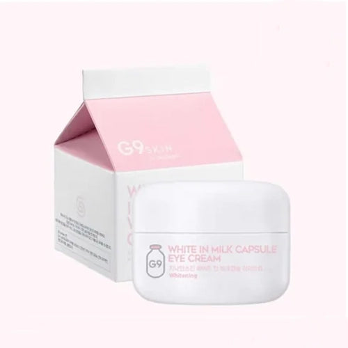 G9SKIN White In Milk Capsule Eye Cream contains highly-enriched capsules infused with 50% milk protein extract, vitamins and nutritional moisturizing ingredients to keep the skin around eyes radiant and elastic. A eye cream that contains 50% of milk protain extracts to achieve moisturing and wirnkle improvement effects. Pat lightly along the eye area with fourth finger.