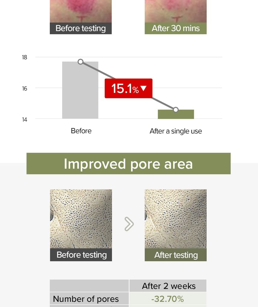 • 71.8% Houttuynia Cordata Extract: Offers anti-inflammatory benefits to soothe troubled skin while helping refine the look of enlarged pores.