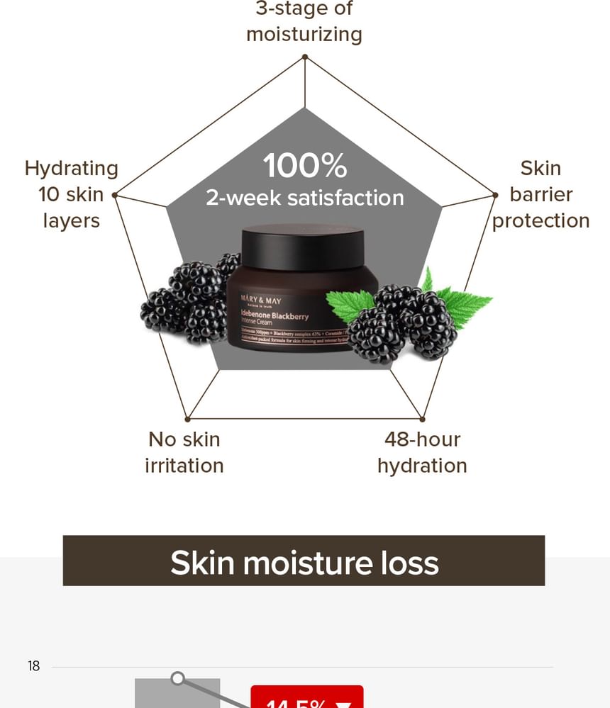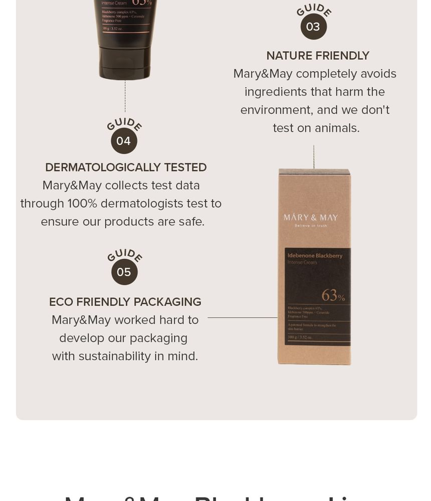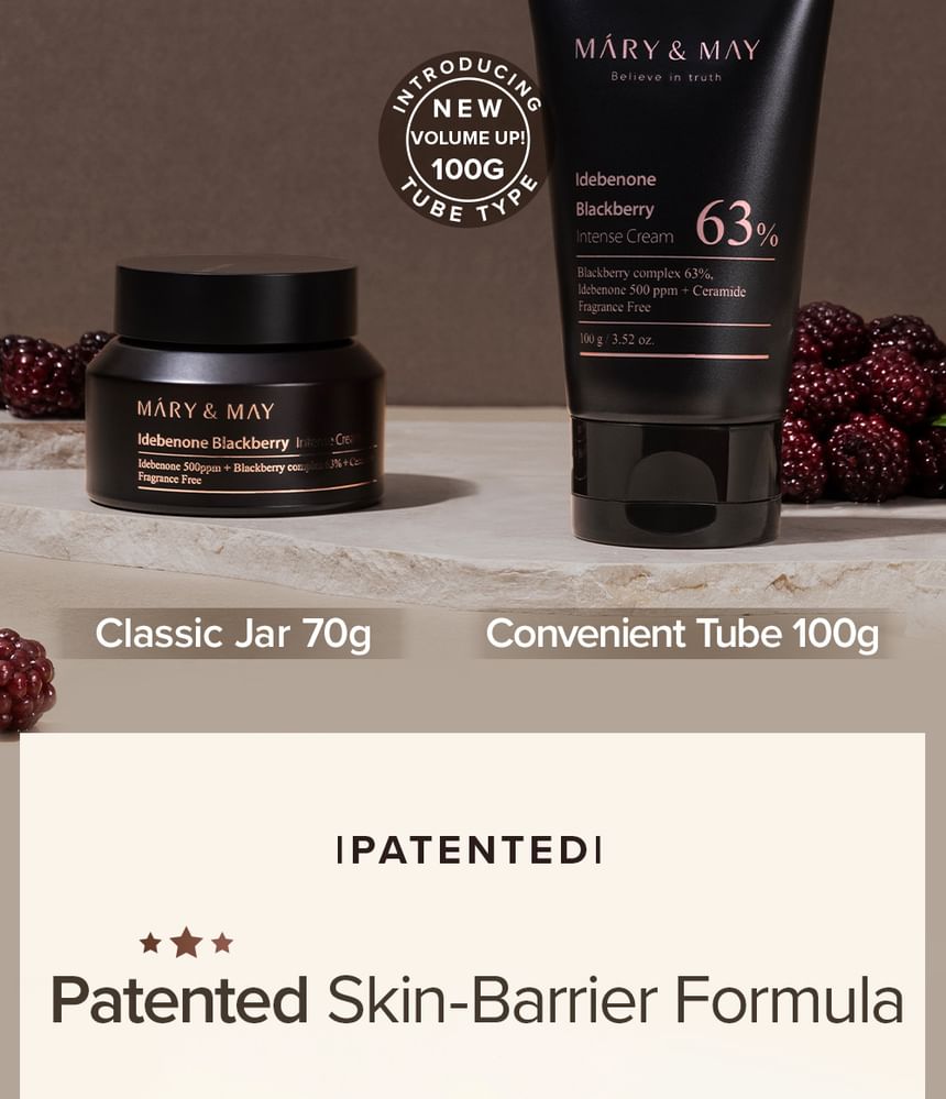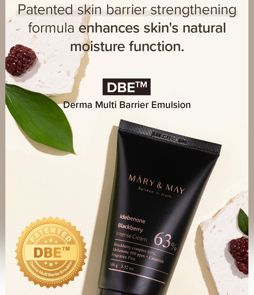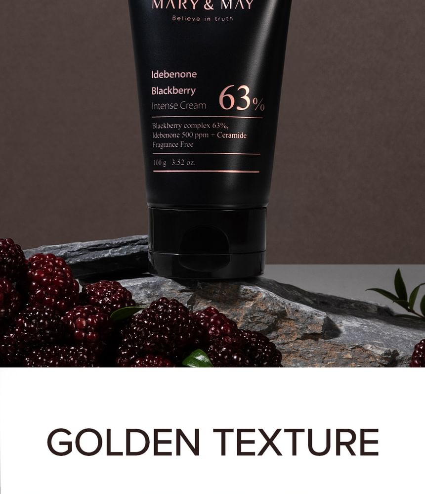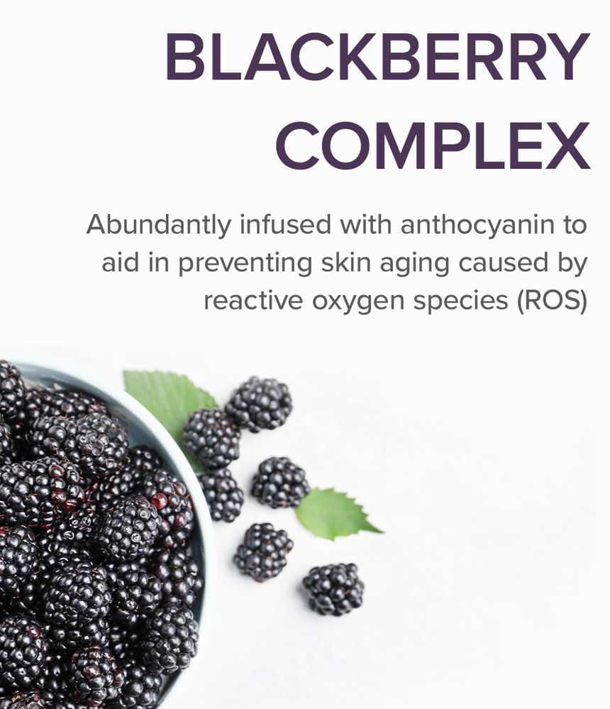 • 63% Blackberry Complex + Idebenone (500ppm): Potent antioxidant duo that helps fight visible signs of aging and promotes youthful-looking skin.