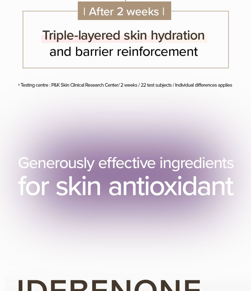 • Ceramide complex + Phytosphingosine: Strengthens the skin’s moisture barrier and prevents moisture loss for lasting hydration.