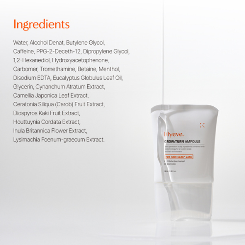 Water, Alcohol Denat., Butylene Glycol, Caffeine, 1,2-Hexanediol, Hydroxyacetophenone, Tromethamine, Carbomer, PEG-60 Hydrogenated Castor Oil, Menthol, Trideceth-10, Disodium EDTA, Betaine, Glycerin, Eucalyptus Globulus Leaf Oil, Vincetoxicum Atratum Extract, Houttuynia Cordata Extract, Camellia Japonica Flower Extract, Prunus Mume Flower Extract, Prunus Persica (Peach) Flower Extract, Althaea Rosea Flower Extract, Viola Mandshurica Flower Extract, Helianthus Annuus (Sunflower) Flower Extract, Inula Britannica Flower Extract, Lysimachia Foenum-graecum Extract