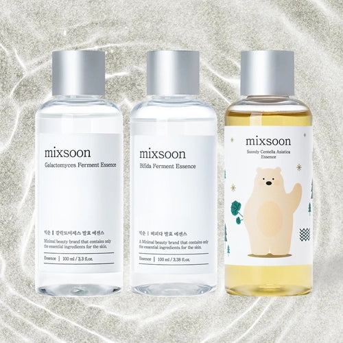 Introducing the Mixsoon Essence Layering Set No. 1, your ultimate skincare solution for achieving radiant and healthier skin in just two weeks. This set comprises three powerhouse essences - Galactomyces Ferment Essence, Bifida Ferment Essence, and Soondy Centella Asiatica Essence - working together in harmony to provide a triple care routine that enhances your skin's glow, texture, and tone.