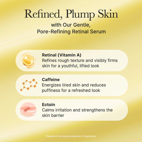 Retinal Booster Shot, 30ml (1.01 fl oz)is a rejuvenating night serum powered byRetinal,Caffeine, andEctointo help visibly smooth texture, refine pores, and support firmer-looking skin. Balanced with skin-barrier lipids and peptides, it delivers hydration and resilience for a refreshed, even complexion.