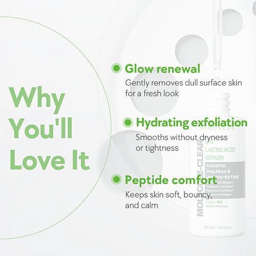 Lactic Acid gently smooths rough patches and promotes cell turnover, revealing a brighter, more even-toned complexion with improved radiance and texture.