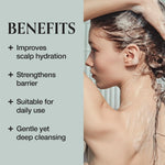 Gently removes buildup, excess sebum, and impurities while maintaining optimal scalp hydration. Ideal for sensitive or troubled scalps in need of daily care.