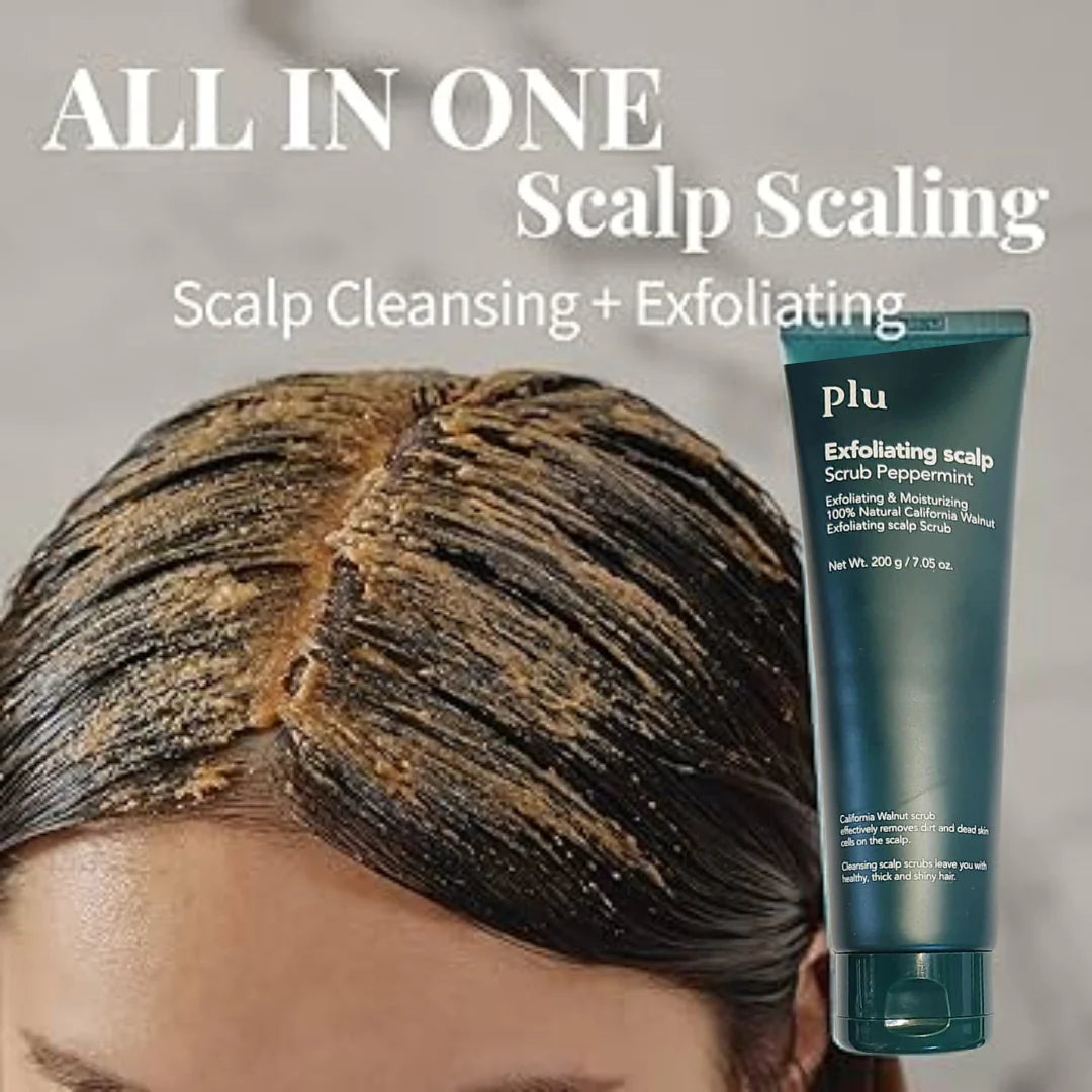 A scalp scrub containing hyaluronic acid, peppermint and 100% natural California Walnut Shell Powder that deeply cleanses to combat excessive hair loss, lack of volume, unpleasant odors, dandruff, and oily scalp.